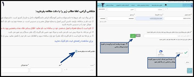 بعد از پر کردن اطلاعات ضروری خواسته شده از شما مانند نام، نام خانوادگی، کد ملی، تاریخ تولد، آدرس ایمیل، و انتخاب یک رمز برای ورود شما به سامانه، فیلد های مربوطه ابتدا تیک “من ربات نیستم” را زده، بعد روی گزینه تماس یا پیامک کلیک کنید تا کد فعال سازی برای شماره تلفنی که با آن ثبت نام می کنید ارسال شود. در آخر گزینه ارسال را بزنید.