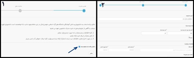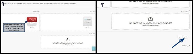 سپس پشت و روی مدارکی مثل ریز نمرات، دانشنامه که در صورت نداشتن آن می توانید از گواهی پایان تحصیلات استفاده کنید، پیوست صندوق رفاه یا به جای آن دانشنامه را در هر باکس آپلود کنید. در این مرحله شما میتوانید فایل JPG هم آپلود کنید و الزامی برای بارگذاری فایل PDF نیست.