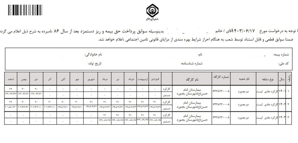سوابق بیمه تامین اجتماعی در دو حالت قابل ترجمه است: